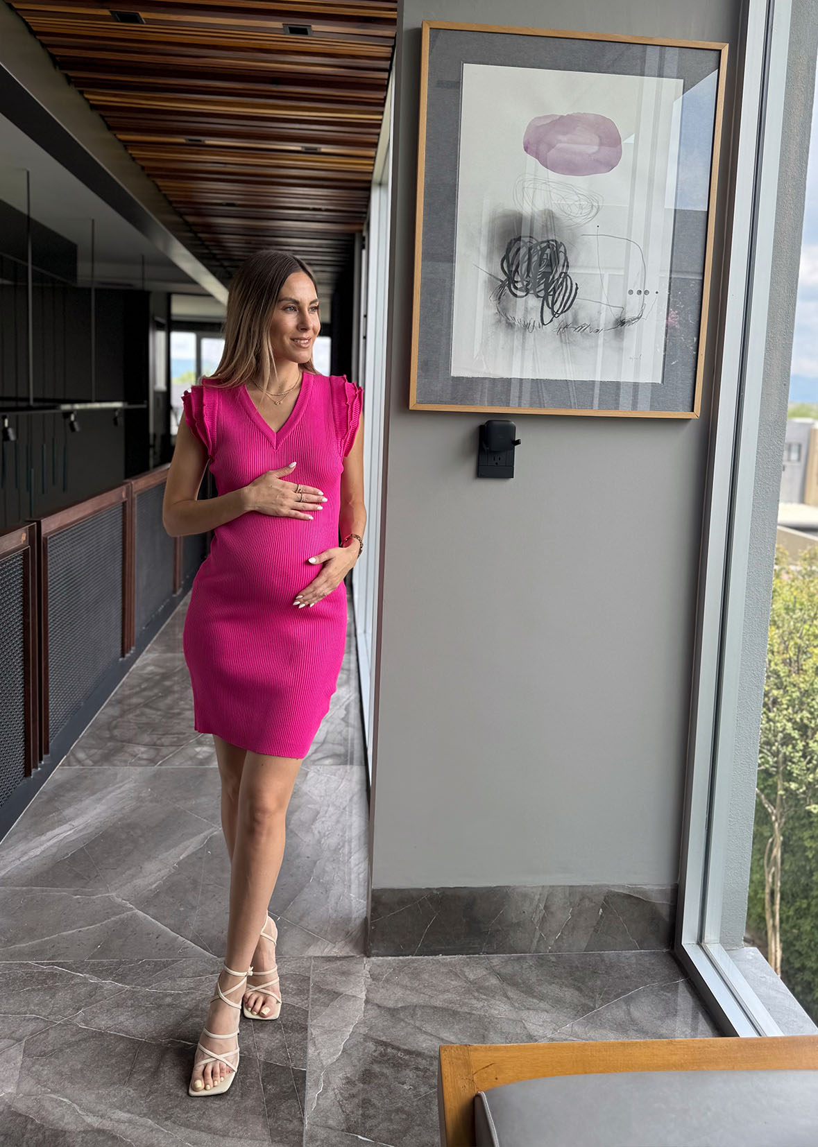 Vestido canale corto rosa barbie mangas olanes.